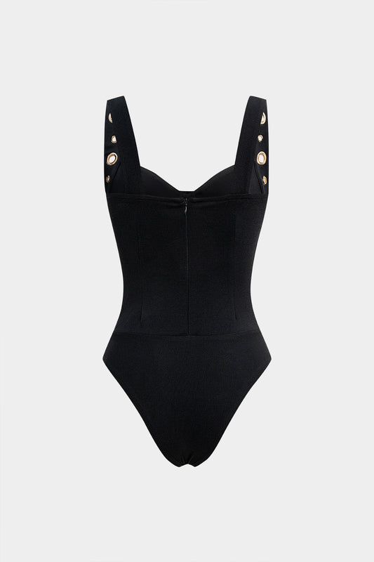 Metallic Eyelet Tank Sleeveless Bodysuit