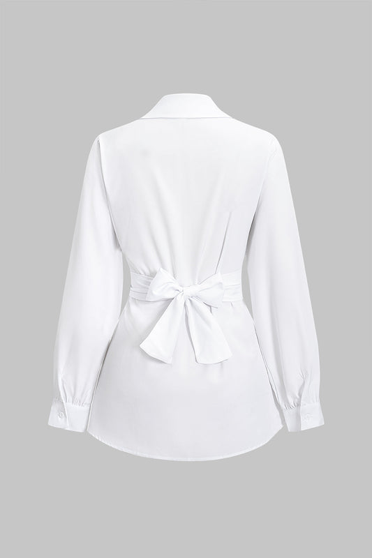 Faux Leather Tie Front Round Neck Long-Sleeve Shirt