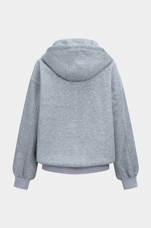 Faux Leather Ruched Zipper Long-Sleeve Shirt