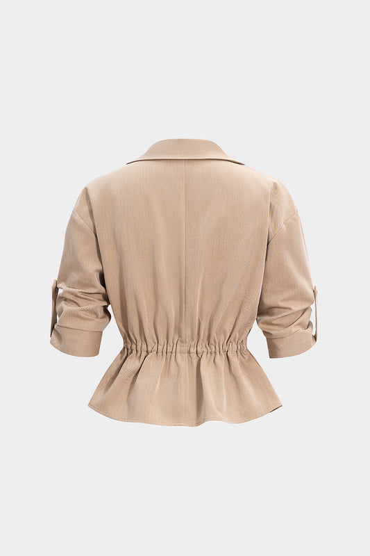 Twist Knot Ruched V-Neck Short-Sleeve Shirt