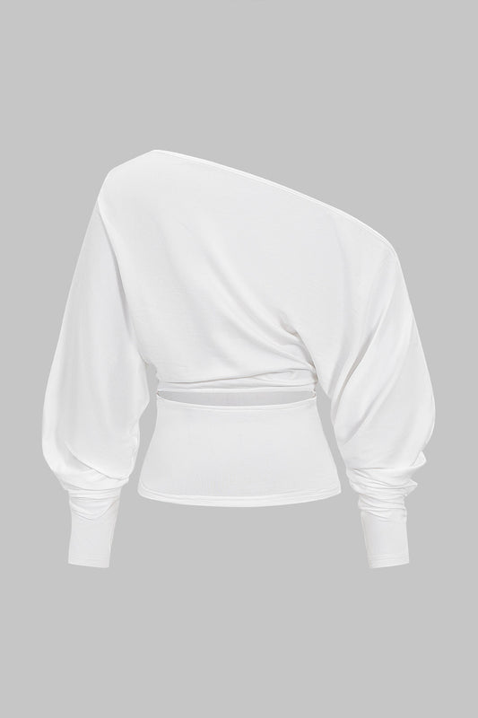 Cut Out One Shoulder Ruched Long Sleeve T-Shirt