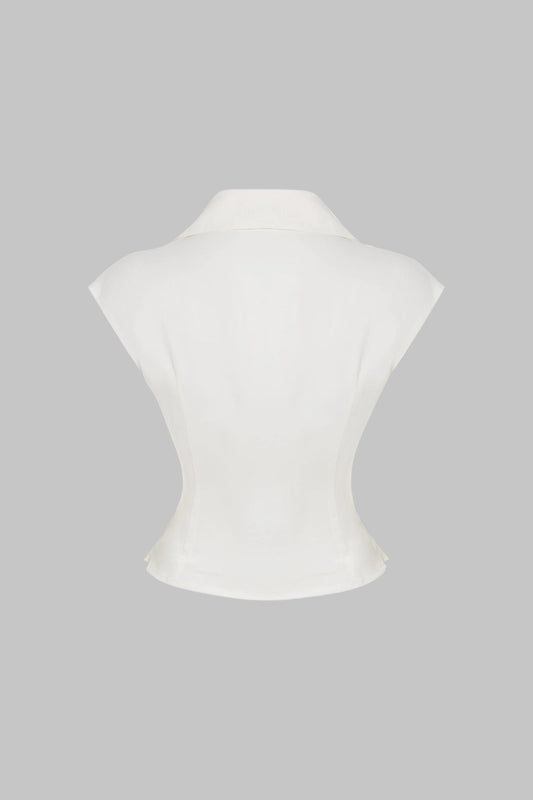 Ruched Asymmetrical Backless Short-Sleeve Top