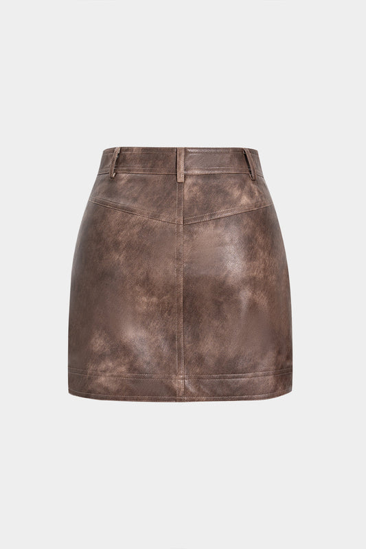 Faux Leather Metallic Zipper Pocket Mini Skirt