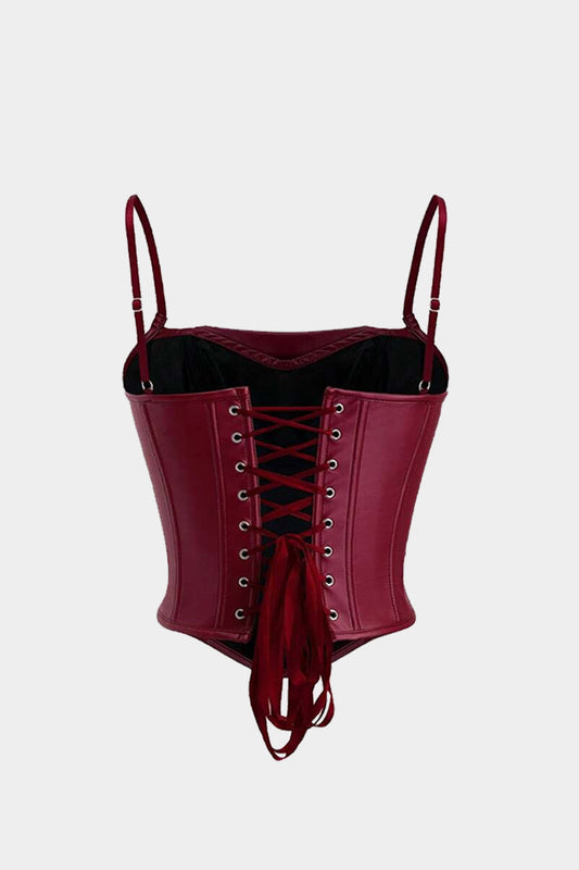 Faux Leather Linen Patchwork V-Neck Cami Top
