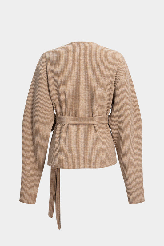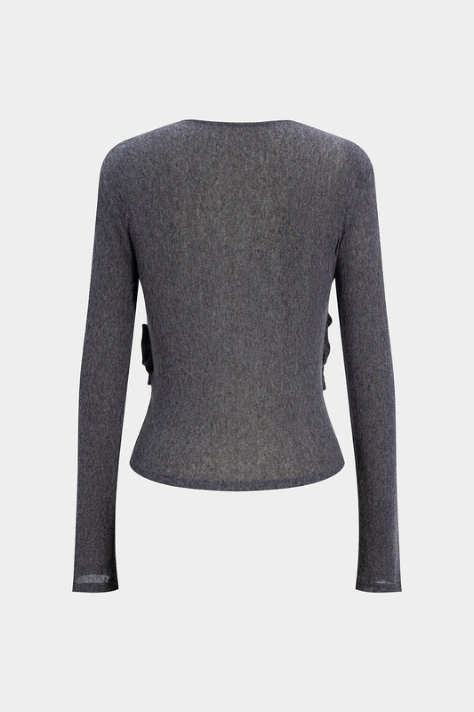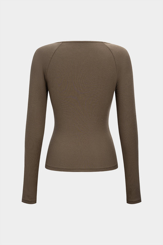 Metallic Twist Knot Ruched Long-Sleeve Top