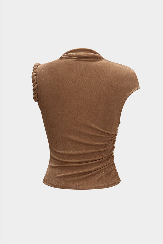Knit Twist Knot Ruched Asymmetrical Tank Top