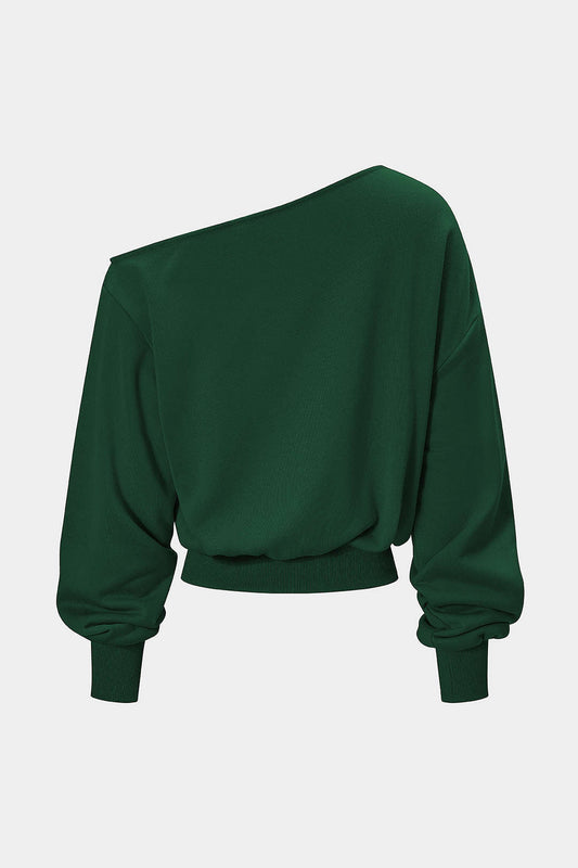 Patchwork Asymmetrical Shoulder Long-Sleeve Top