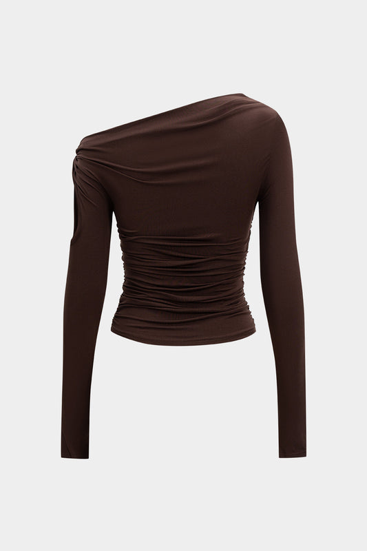 Asymmetrical One Shoulder Ruched Long-Sleeve Top