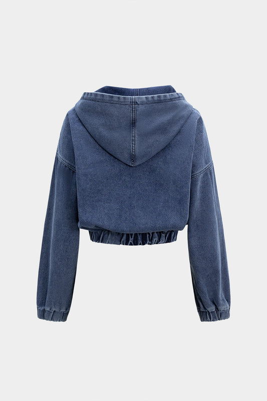 Denim Button Zipper Cami Top And High Waist Straight Leg Jeans Set