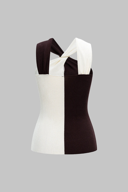Halter Neck Tie-Back Asymmetrical Long-Sleeve Top