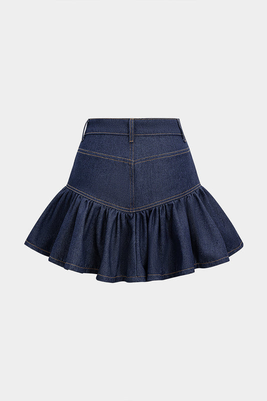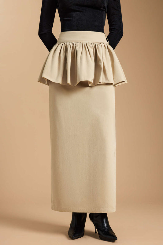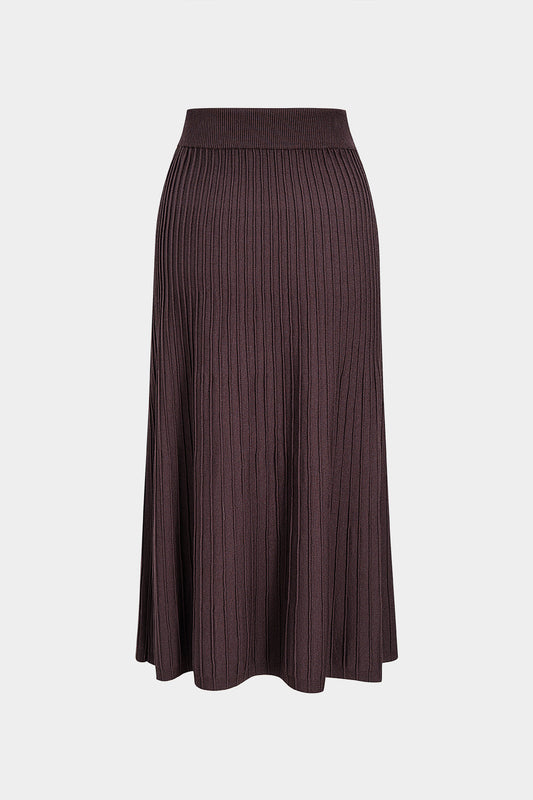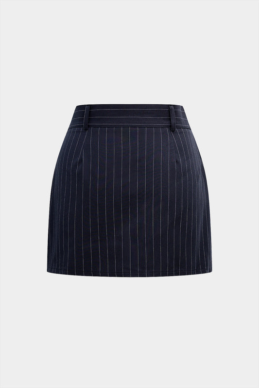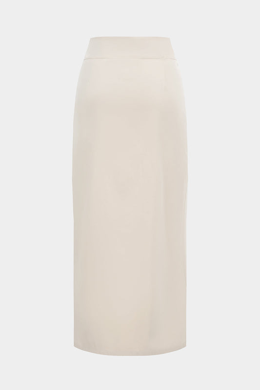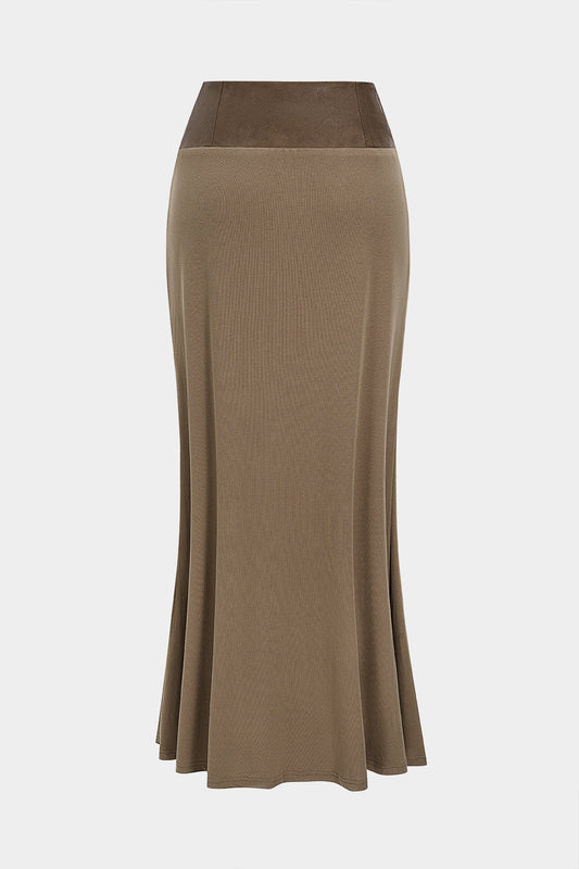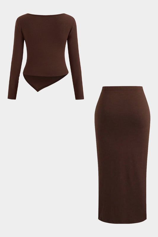 Contrast Button Long-Sleeve Top And High Waist Skirt Set