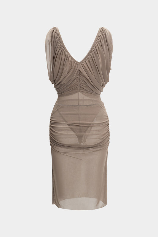 Chiffon Ruched V-Neck Sleeveless Bodysuit And Skirt Set