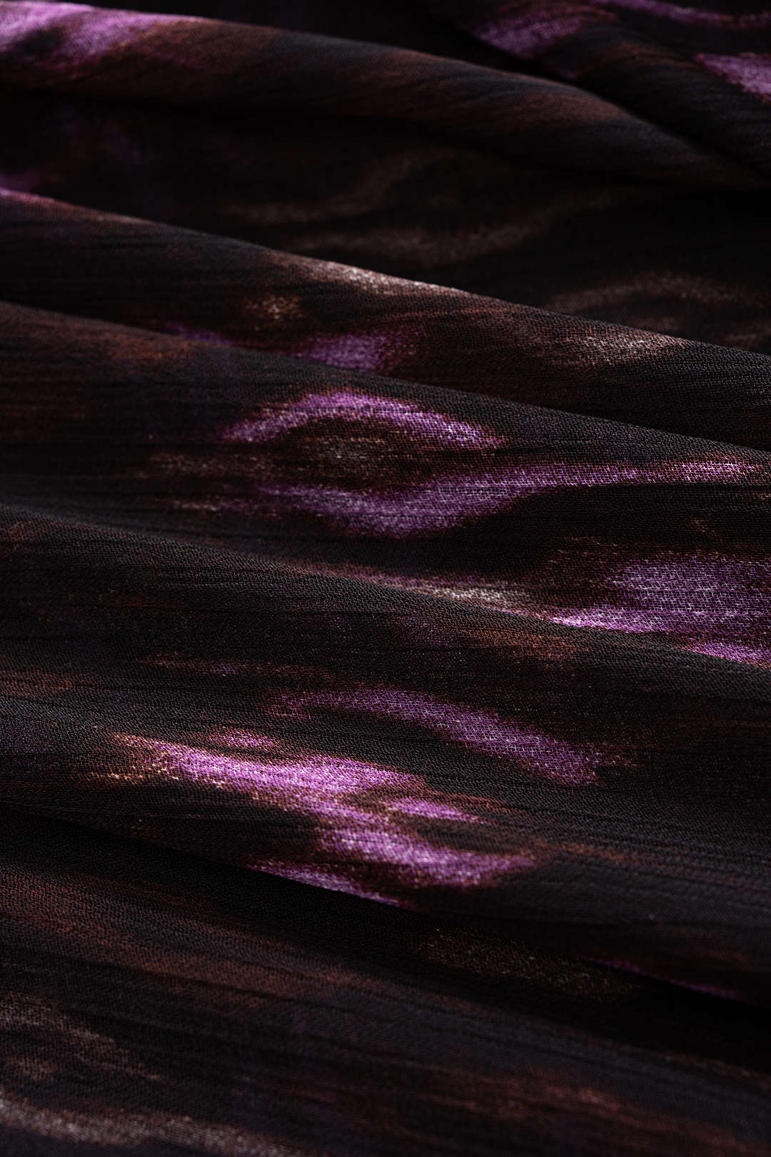 Abstract Leopard Print Chiffon Ruched Long Sleeve Maxi Dress