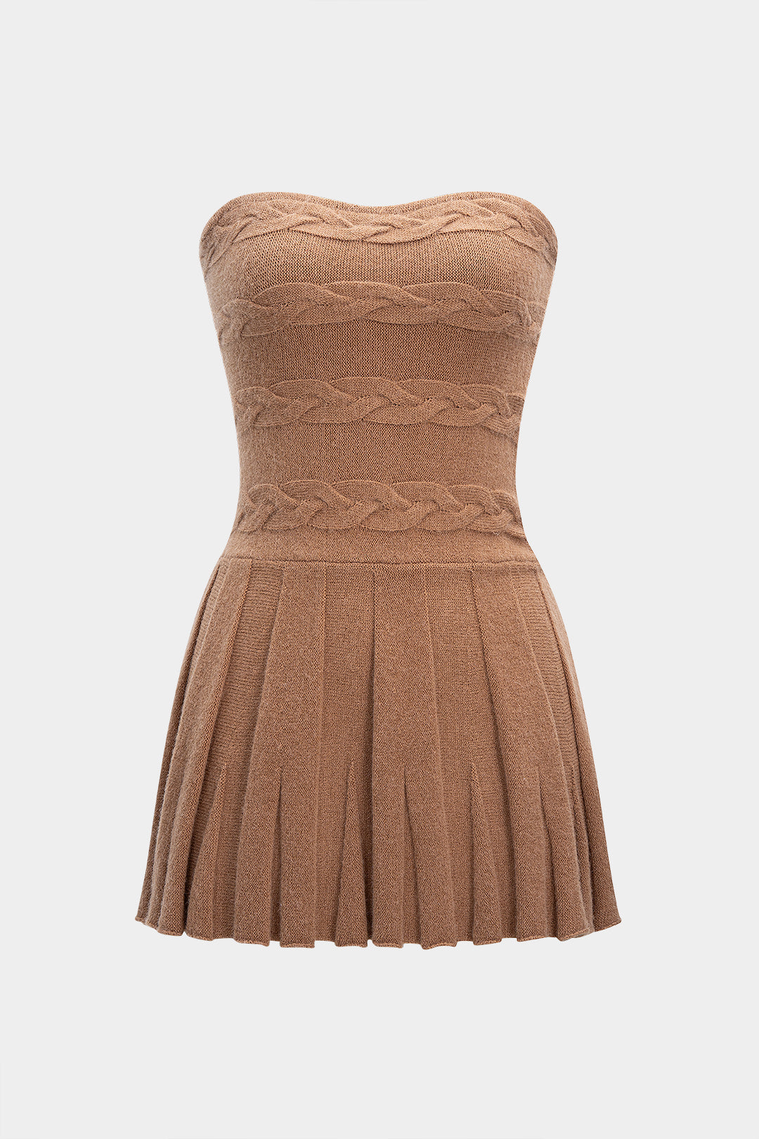 Cable Knit Strapless Pleated Mini Dress