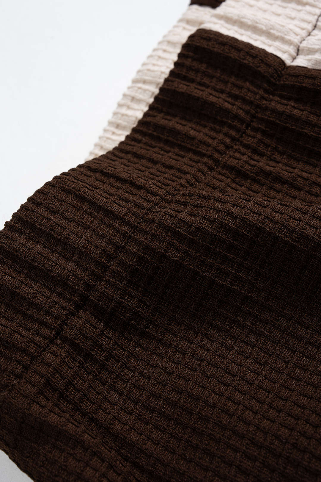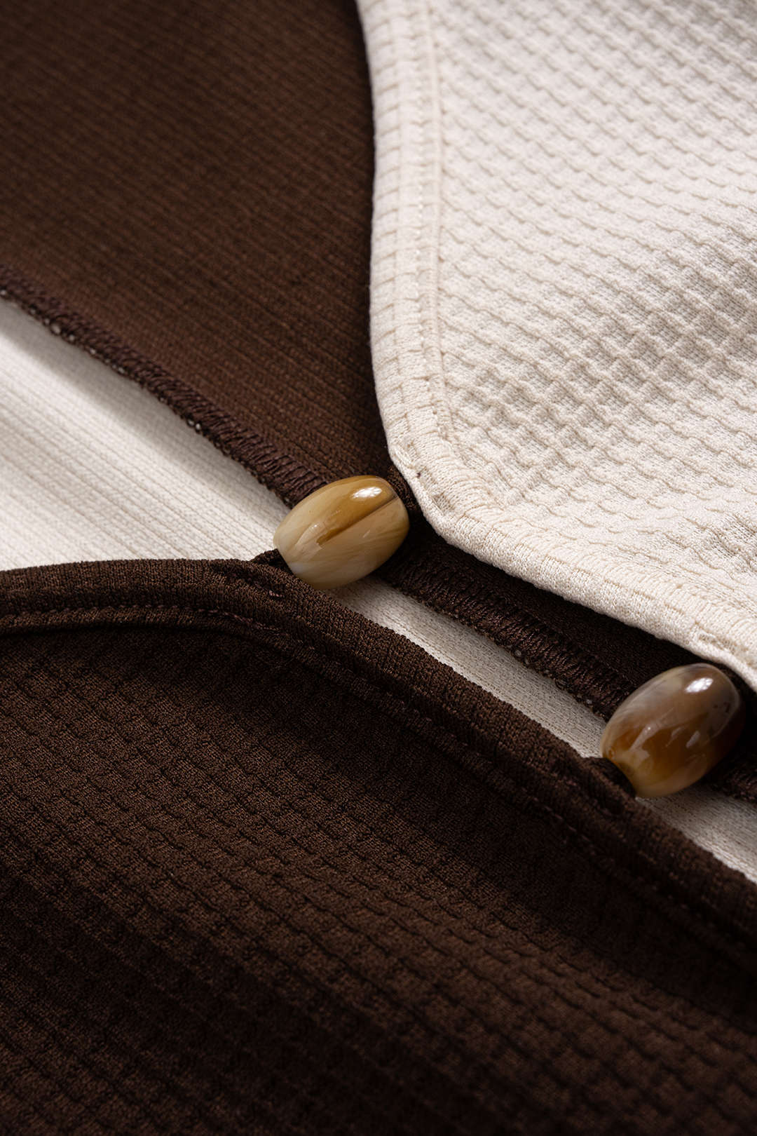 Contrast Button Long-Sleeve Top And High Waist Skirt Set