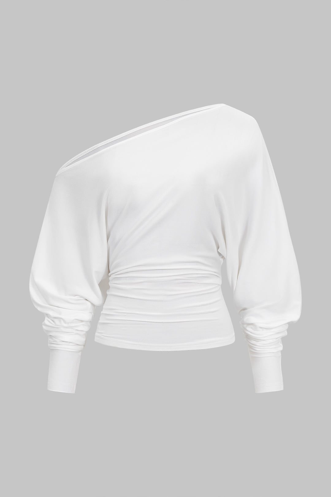Cut Out One Shoulder Ruched Long Sleeve T-Shirt