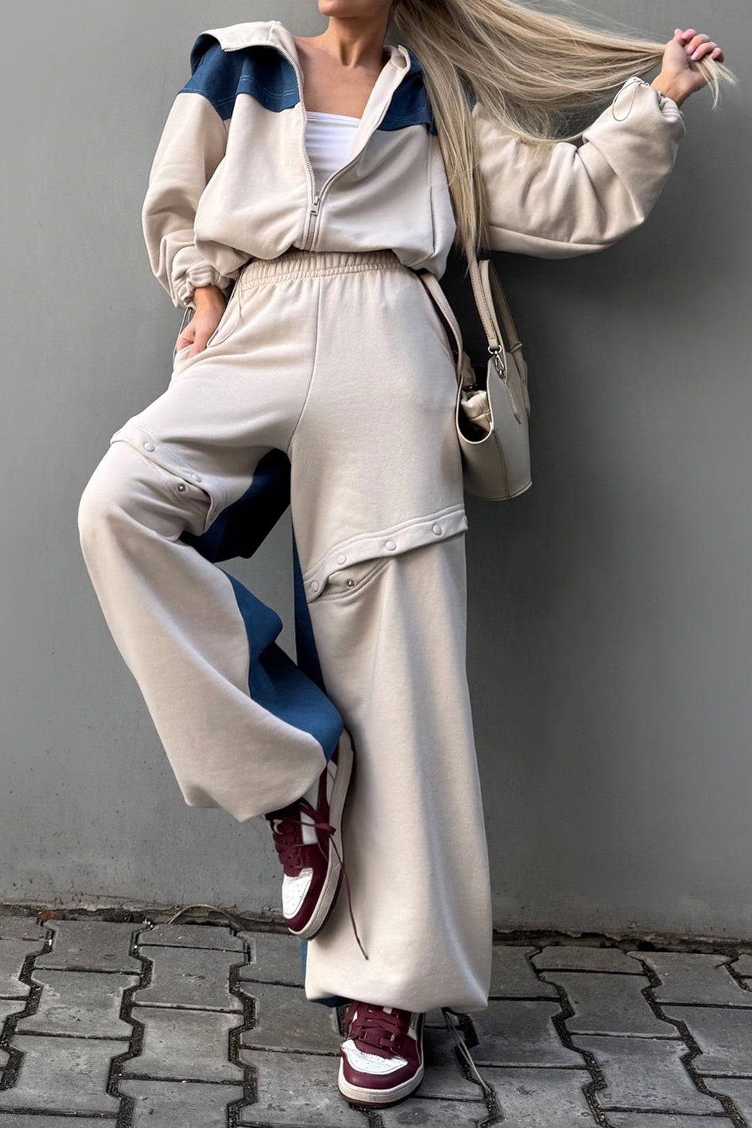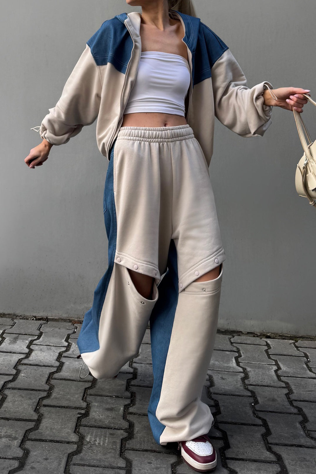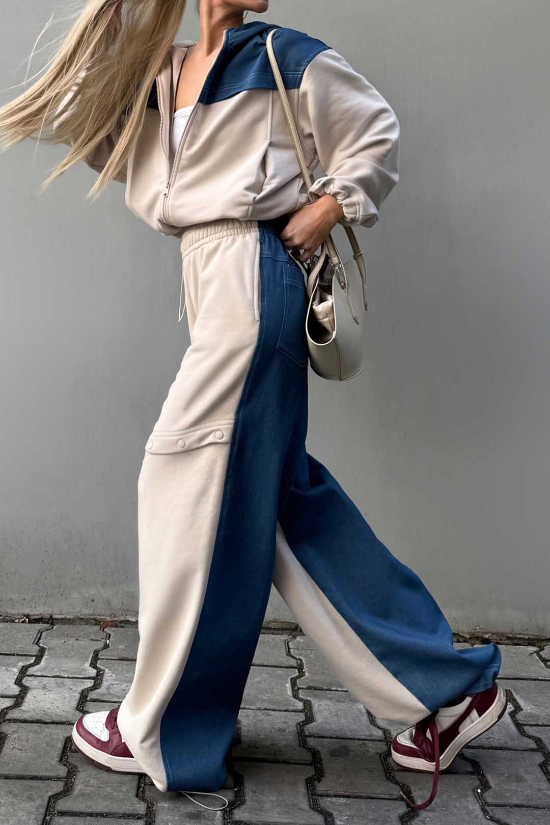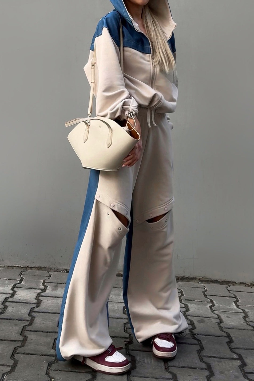 Denim Patchwork Zipper Stitching Hoodie