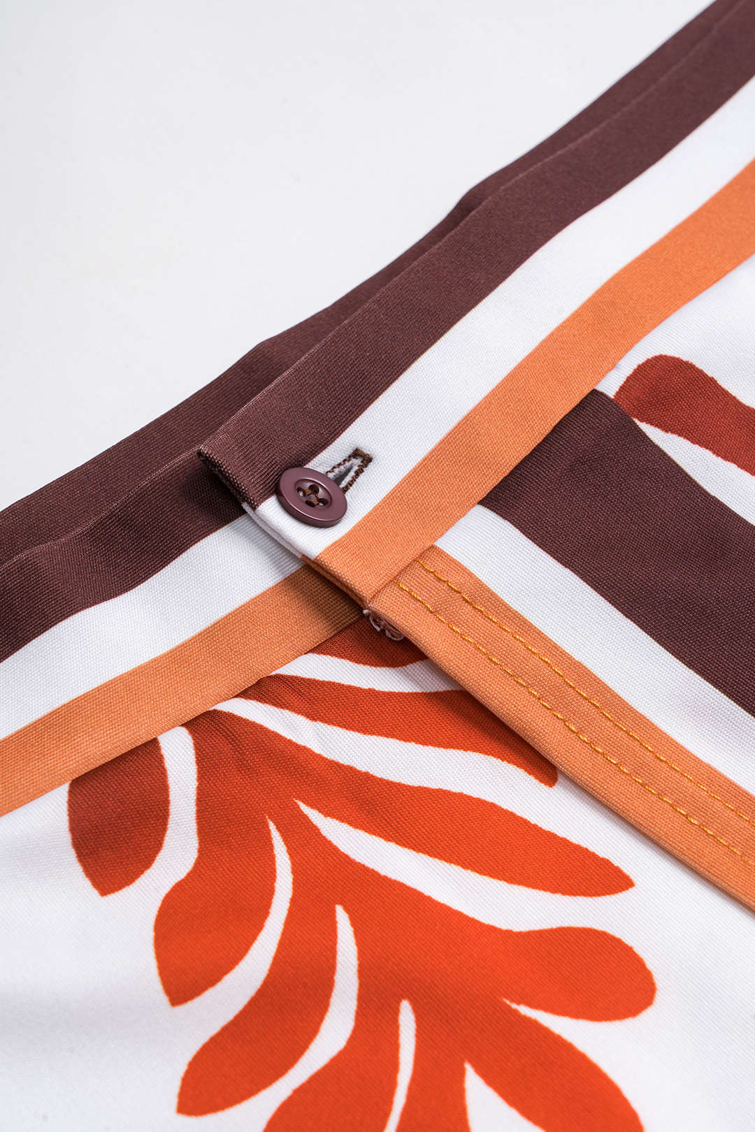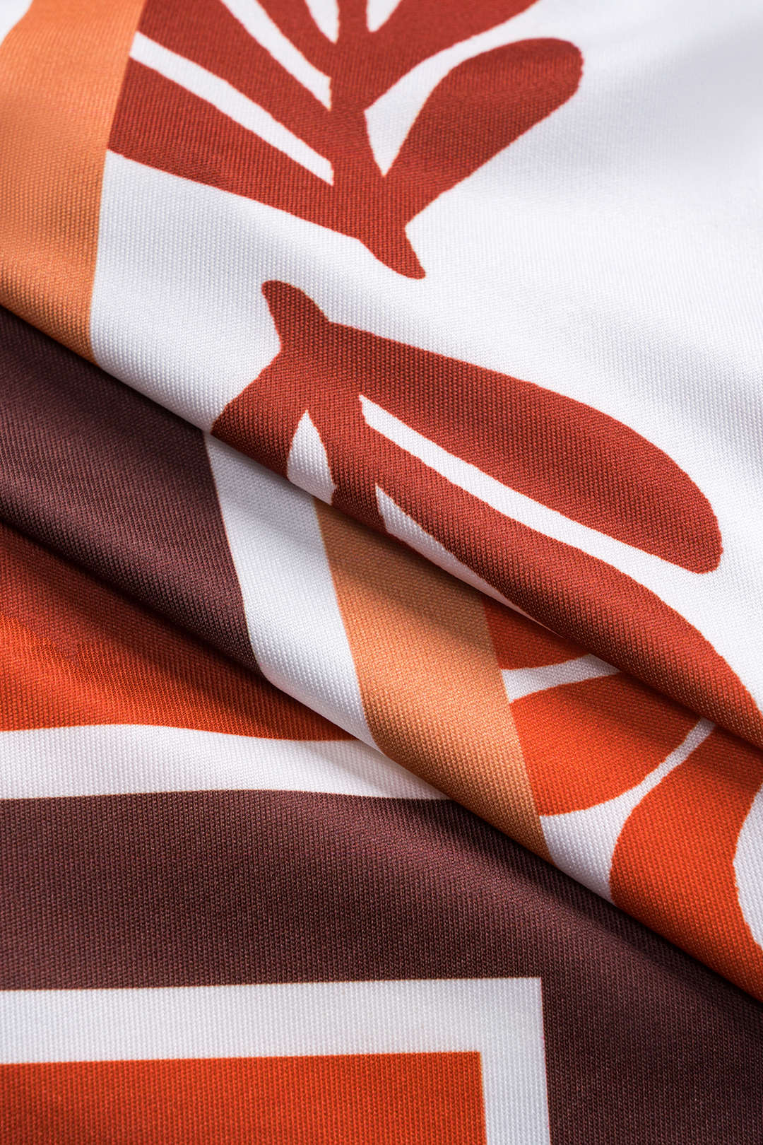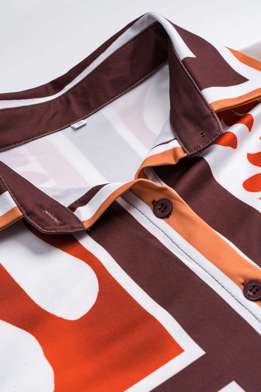 Leaves Print Satin Long Sleeve Shirt And Asymmetrical Mini Skirt Set