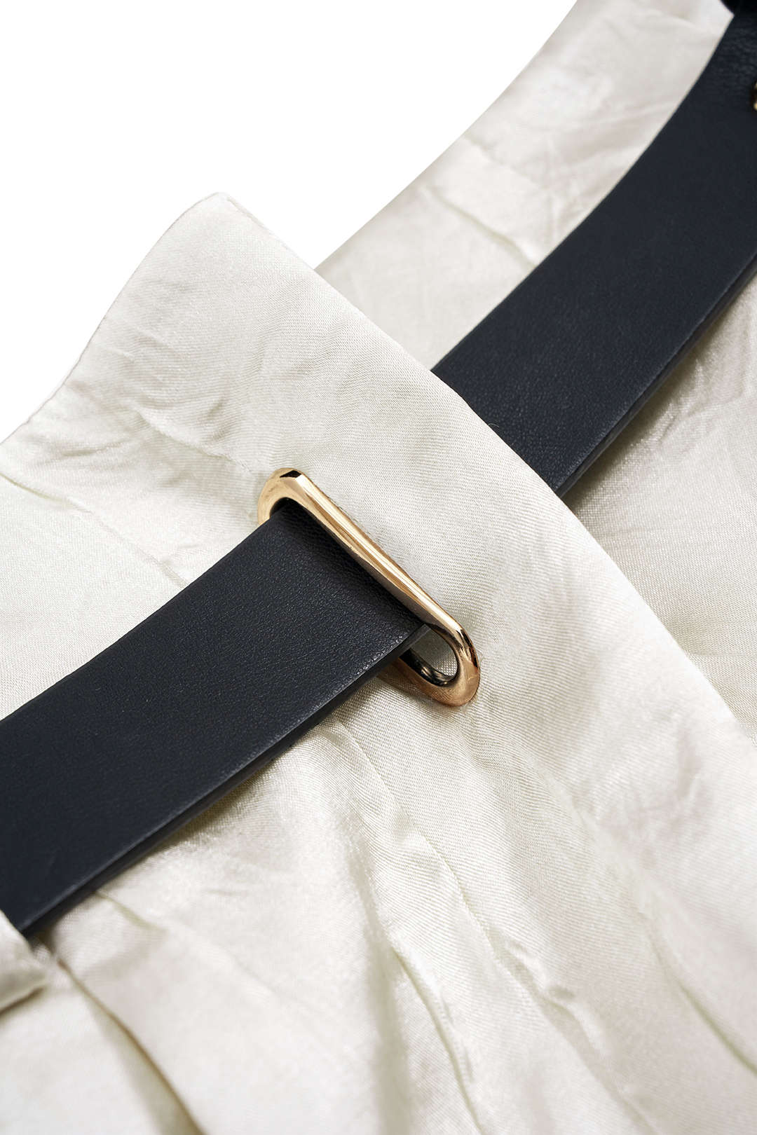 Satin Texture Belted Wide Leg Low Waist Trousers