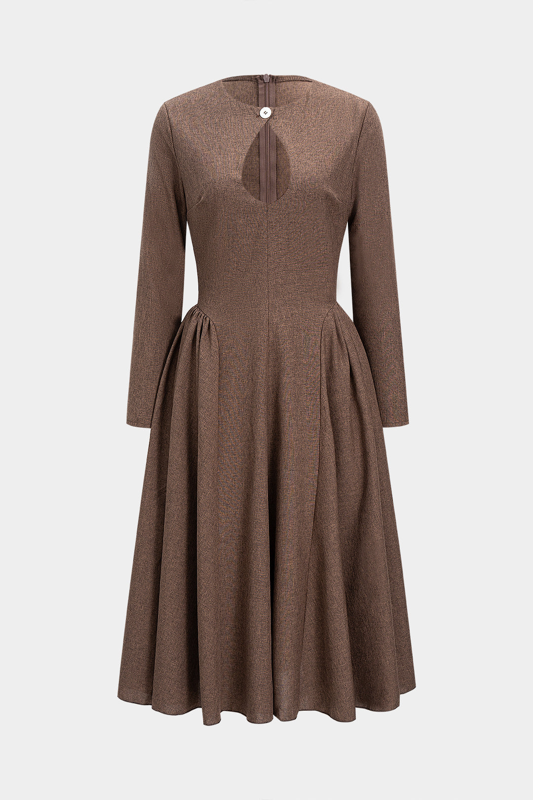 Zipper Cut Out Ruched Long Sleeve Maxi Dress